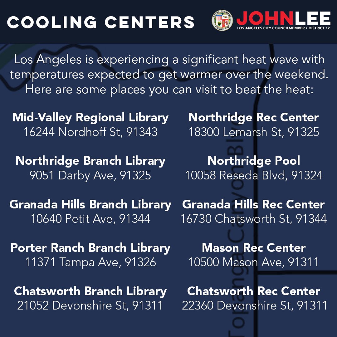 To find your nearest cooling center, refer to the images for detailed locations and hours of operation. Stay safe, stay cool, and protect yourself from the sun during this heatwave!