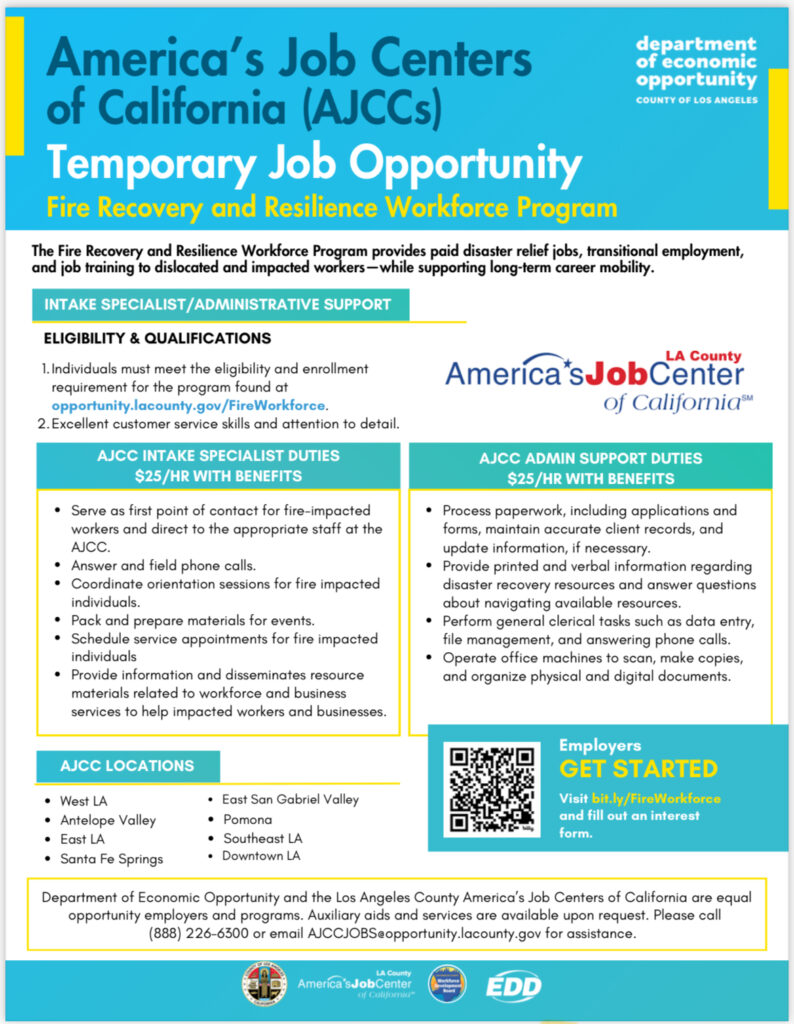 Businesses can increase capacity by hosting temporary workers through the Fire Recovery & Resilience Workforce Program. The program covers wages, benefits, liability, and payroll, and also offers incentives for permanent hires.