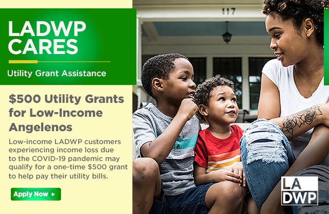 If you have lost income due to the COVID-19 pandemic, you may be eligible to receive a one-time, $500 check to help pay utility bills. Funding is limited. Online Applications accepted from November 2 through November 15, 2020. APPLY: http://www.ladwp.com/UtilityCARES